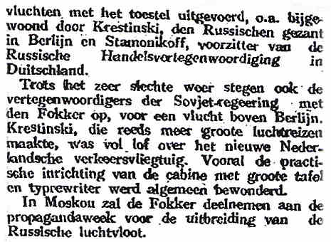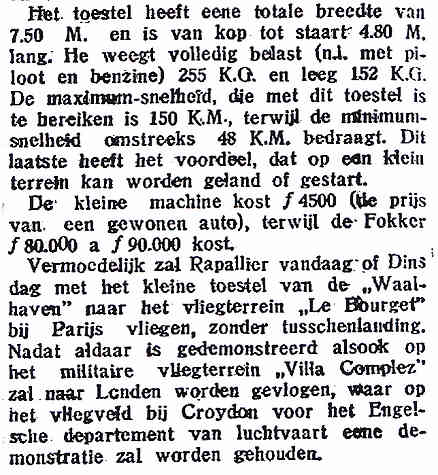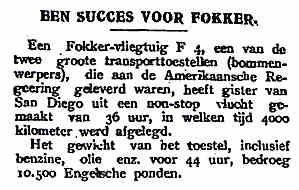 7 - De dagbladpers bericht over de demo-tour van de Fokker F.V.