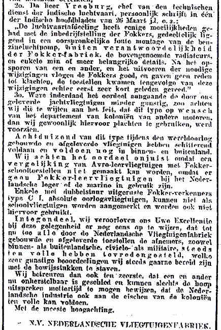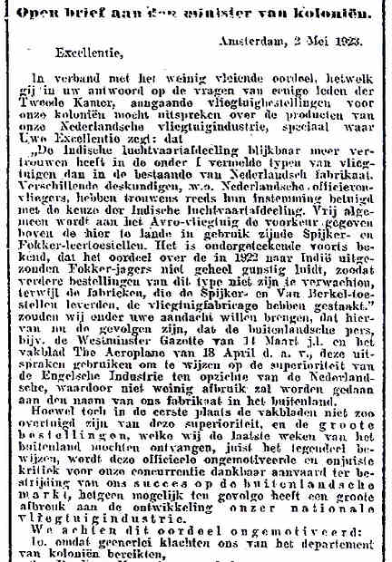 8 - In de NRC van 8 mei schrijft Fokker een open brief aan de Minister van Koloniën