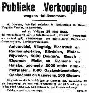 Advertentie in de NRC 18.5.1923. (KB)