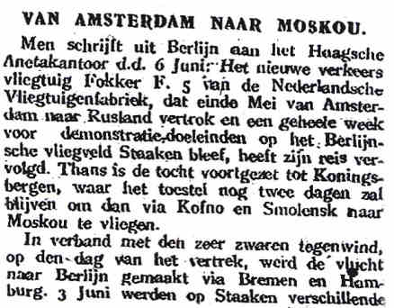 Bericht in Het Vaderland 7.6.1923. (KB)