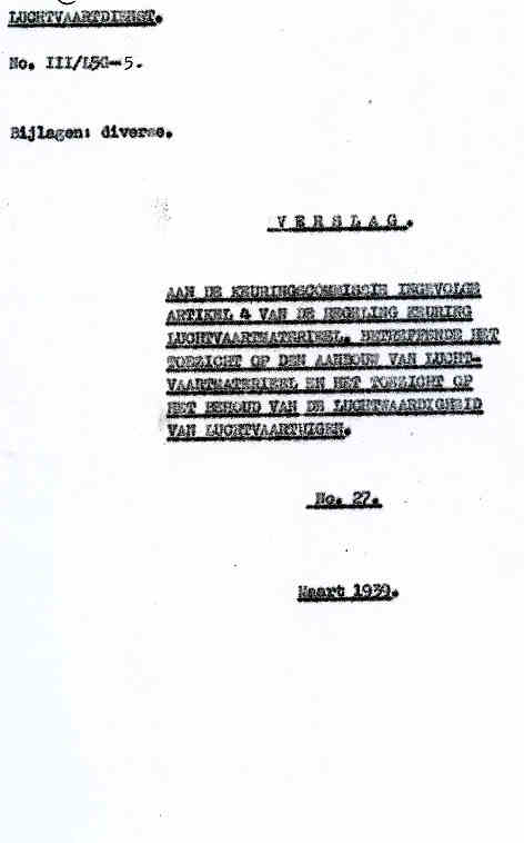 Verslag over maart 1939 aan de Keuringscommissie ingevolge art.4 van de