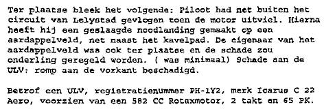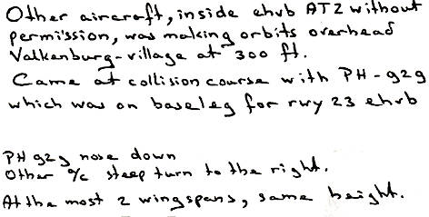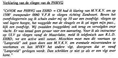 De verslaglegging van dit incident is nogal chaotisch! Hiernaast is sprake van de PH-MDL en PH-GVA, de LVB noemt ze PH-MLE en PH-VGA! En dat laatste is correct! |
