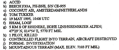 NEDERLANDSE ONGEVALLEN EN INCIDENTEN 1995