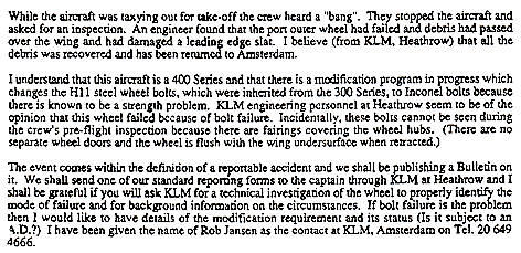 besloot door te vliegen naar Keulen. Bij de landing daar kwam wiel #4 los van de wielpoot zonder dat