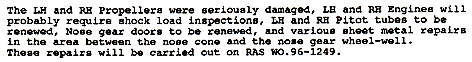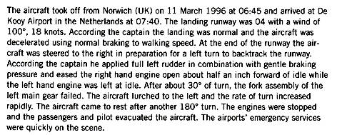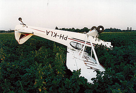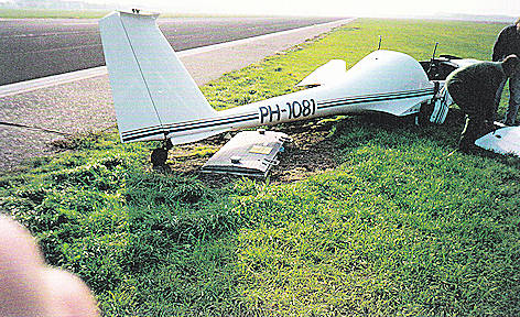 Hierdoor ontstond een grondzwaai. Linker schroeftips en linker vleugeltip beschadigd.