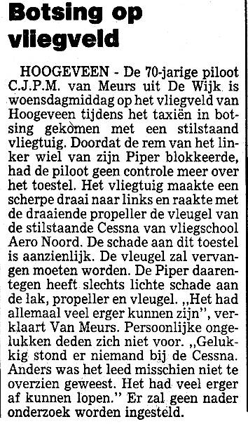 27.03.1996 PH-RDM Piper PA-18-135 Super Cub Hoogeveen Botsing