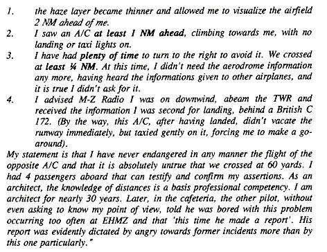 manoeuvre maken om de Lancair te ontwijken. De vlieger van de Lancair had door de laagstaande zon de