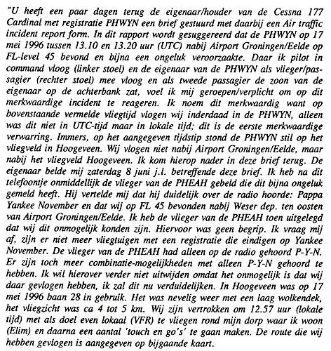06.04.1996 N210PW Cessna 210 Centurion Midden Zeeland Airmiss, PH-WDS