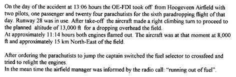 durfde, hoewel hij al vlak bij (18 minuten) het veld was, niet door te vliegen en maakte een voorzorgslanding.