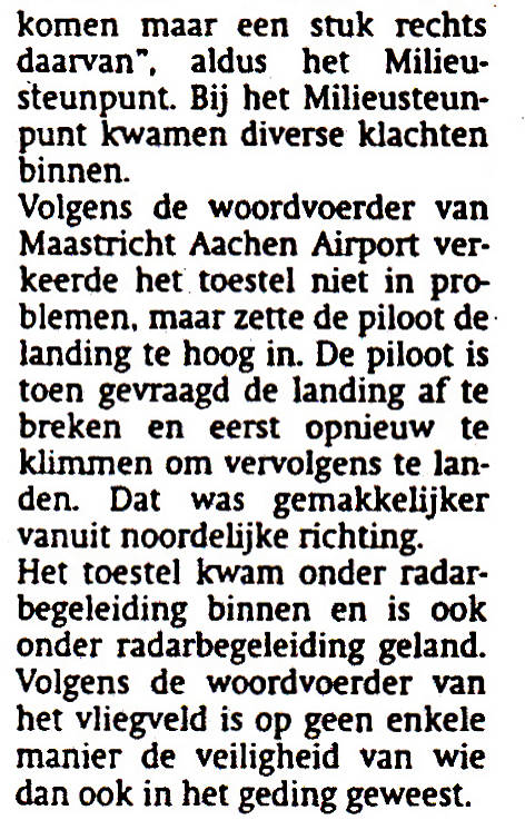 voorgeschreven hoogte. De toestellen passeerden elkaar met een hoogteverschil van 30 meter.