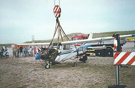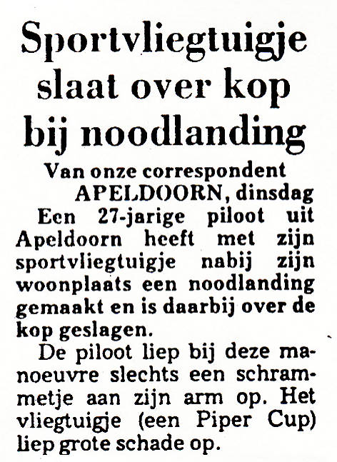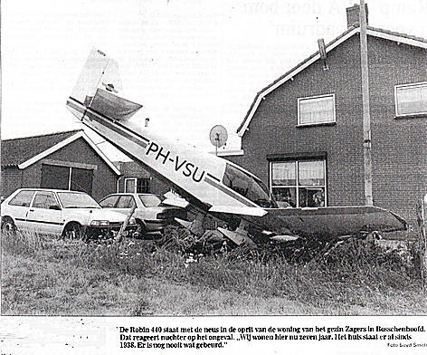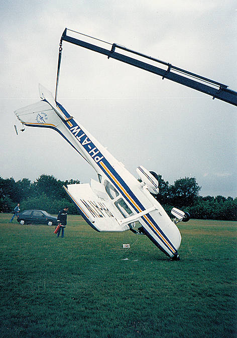 ongeveer 30 meter vóór de eveneens in het circuit vliegende PH-TRT terecht. De laatste moest een heftige