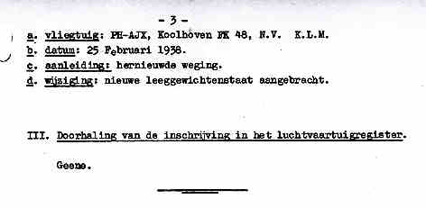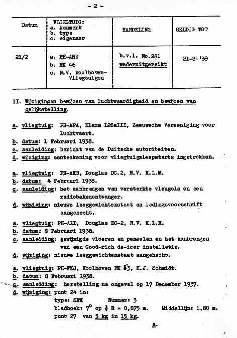 ingevolge art.4 van de Regeling Keuring Luchtvaartmaterieel betreffende: