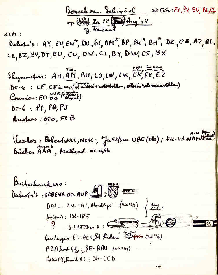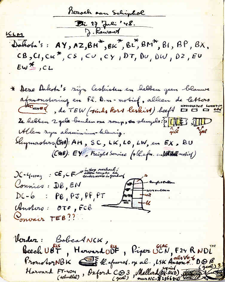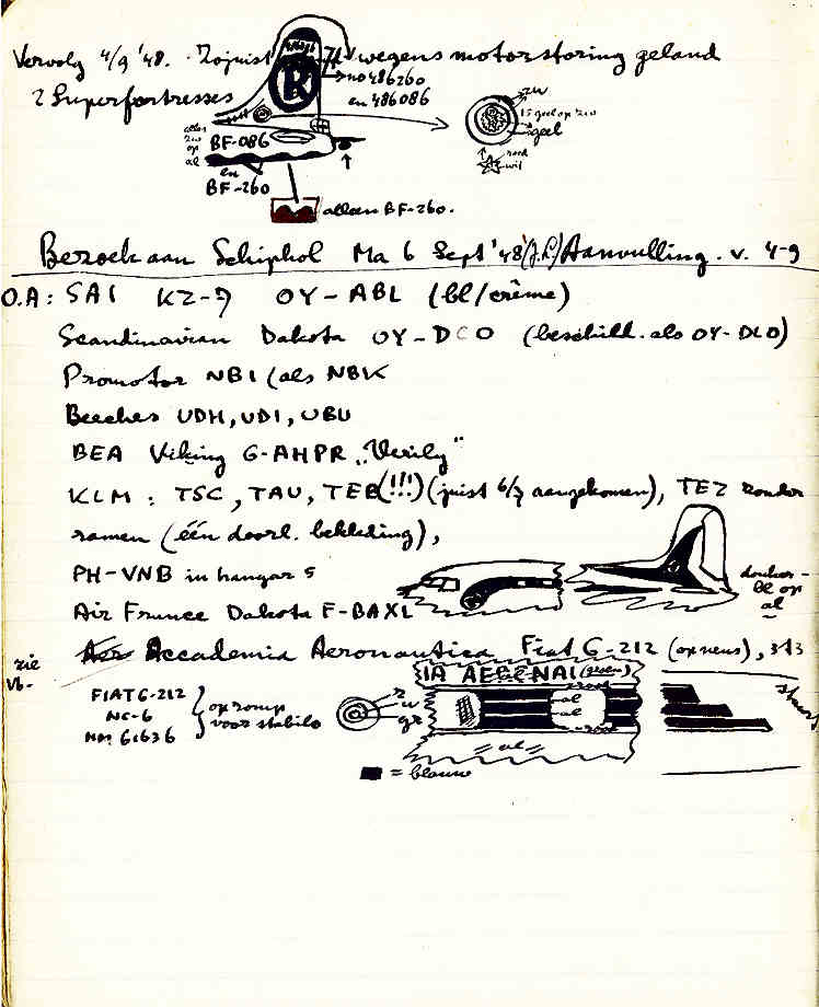 In zijn spottersboek staan dus talloze schetsjes van opmerkelijk zaken die hij aan vliegtuigen waarnam.