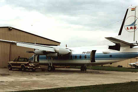 | Op 10 juli 1987 werd de PH-GDG ingeschreven en de dag daarna werd deze inschrijving weer doorgehaald. Het gebeurde op Curaçao en omdat het kenmerk er nog geen dag heeft opgestaan en de PH-GDG dus nooit in Nederland is geweest zullen er weinig (of geen) foto's van zijn gemaakt. Hier zien we op drie foto's die ik van Piet de Geus kreeg het hele proces van N421SA naar PH-GDG en tenslotte CP-2165. (NB. zijn dochter heet Geesje, vandaar GDG) |