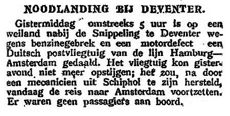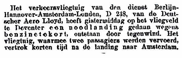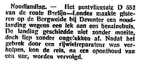 noodlandingsterrein van Deventer moest wegens brandstofgebrek een