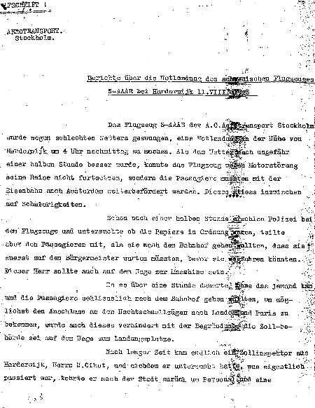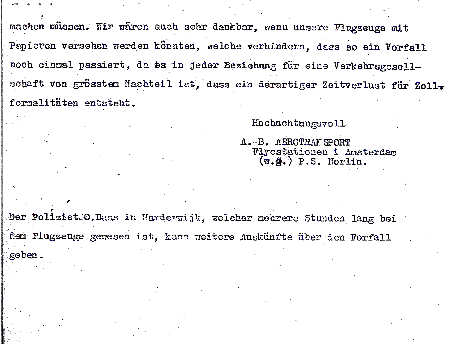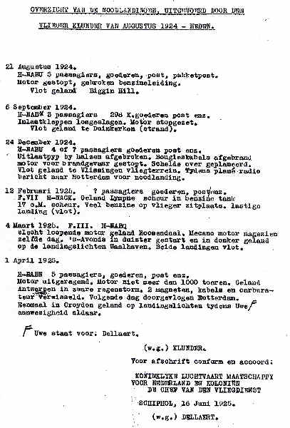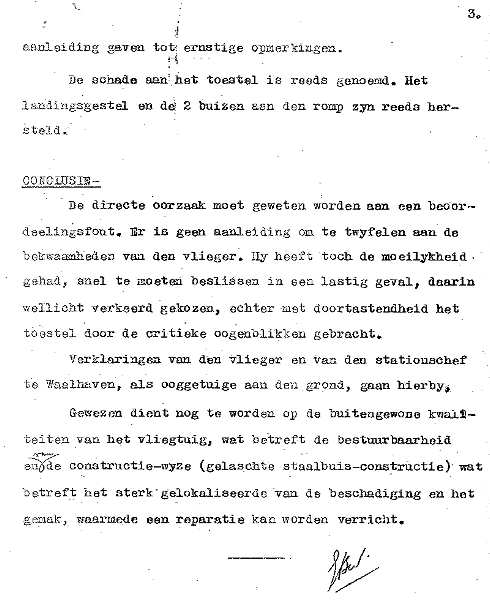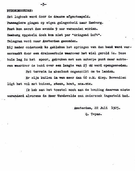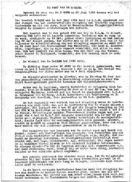 Het proces-verbaal dat opgesteld werd door de heren Spit(KLM) en Malaquin (SGTA). (Coll. H. Dekker)