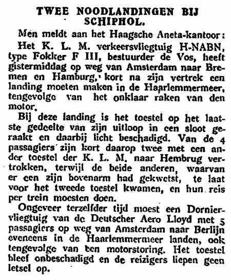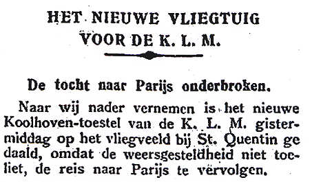de start werd het onderstel beschadigd maar de vlucht naar Croydon werd gewoon