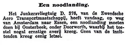 vliegtuig vloog de lijn Londen-Berlijn. In de buurt van Almelo ontstond er een