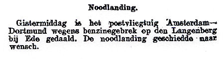 postvliegtuig Amsterdam-Dortmund moest wegens brandstofgebrek een noodlanding