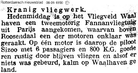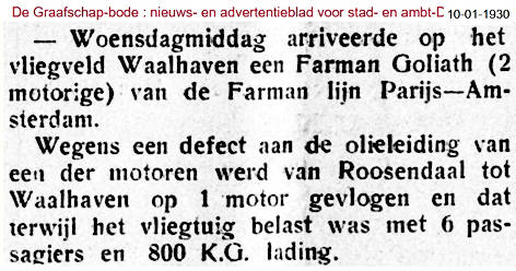 08.01.1930 F-# Farman 60 Goliath Rotterdam onbekend Motorstoring