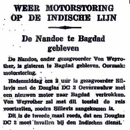 02.01.1938 PH-ALN Douglas DC-3 Bagdad Weyrother von, Th.W. Zuigerbreuk