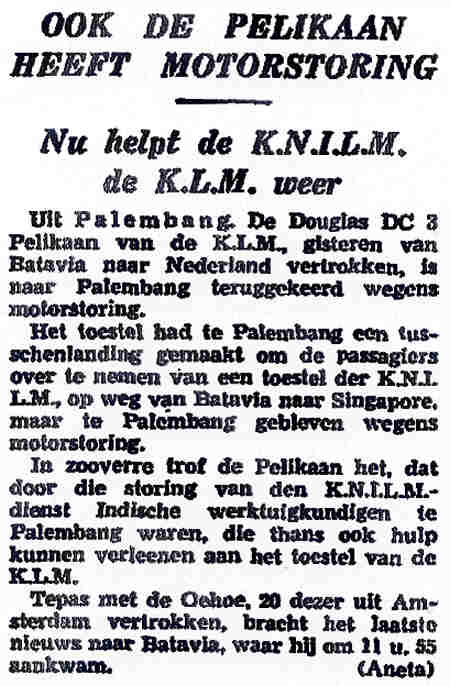 25.12.1938 PH-ALW Douglas DC-3 Medan Sillevis, L. Motorstoring