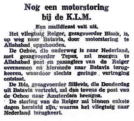 16.03.1938 PH-ALN Douglas DC-3 Singapore Viruly, A. Teruggekeerd, motorstoring