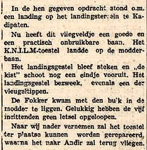 17.02.1938 PK-AFD Fokker F.VIIb-3m Kadipaten onbekend Beschadigd