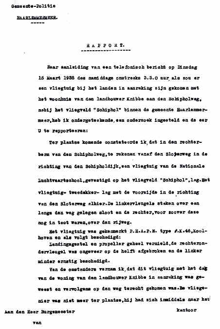 15.01.1938 PH-AJK Koolhoven F.K.43 Schiphol onbekend Noodlanding, water in brandstof