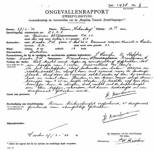27.03.1938 PH-55 Grunau 9 (ESG) Heerlen Dirkx, P.H. Botsing tegen dennetje