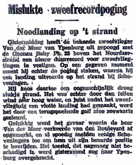 06.02.1938 PH-39 Grunau 9 (ESG 29) Vlissingen Bleuet, P.P. Harde landing