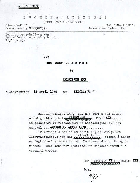 - PH-ARU Het BvL werd geschorst op 16.2.1938 en weer uitgereikt op 29.5.1937.