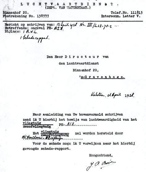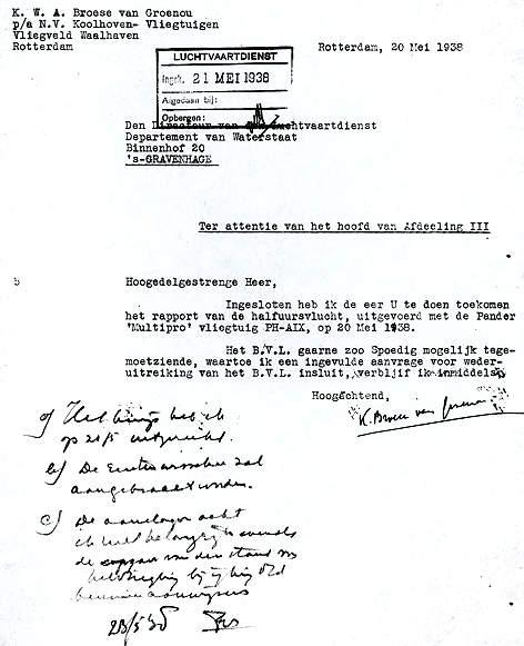 - PH-AJA Het BvL werd weer uitgereikt op 18.5.1938. Ik heb geen incident in mijn database