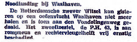 06.09.1938 PH-ATM De Schelde Scheldemeeuw Lekkerkerk Reintjes Noodlanding