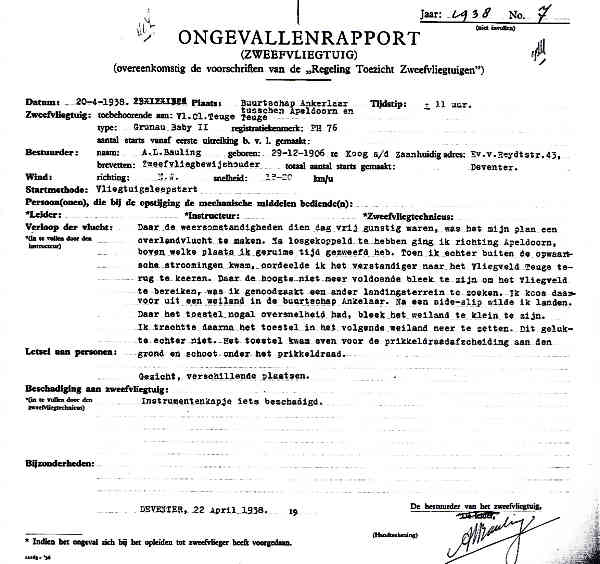 01.10.1938 PH-73 R.R.G. Zögling Amsterdam Westerveld, B. Tegen de grond gevlogen