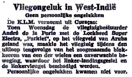 26.11.1938 PH-ARE Douglas DC-3 Amsterdam onbekend Vleugelneus beschadigd