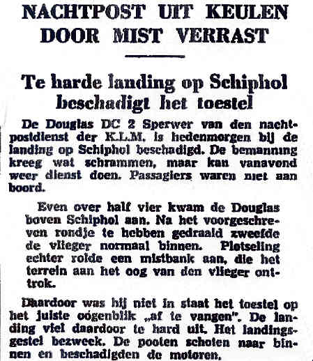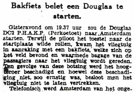 24.01.1938 PH-AKK Douglas DC-2 Rotterdam onbekend Schade aan cabinedeur