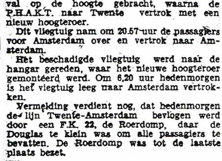 24.01.1938 PH-AKN Douglas DC-2 Parijs onbekend Schade aan hoogteroer