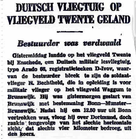 05.09.1938 PH-ATI de Havilland Puss Moth Bentheim Reinders, D.H. Noodlanding laaghangende bewolking