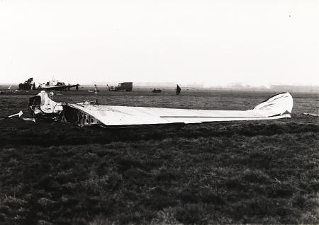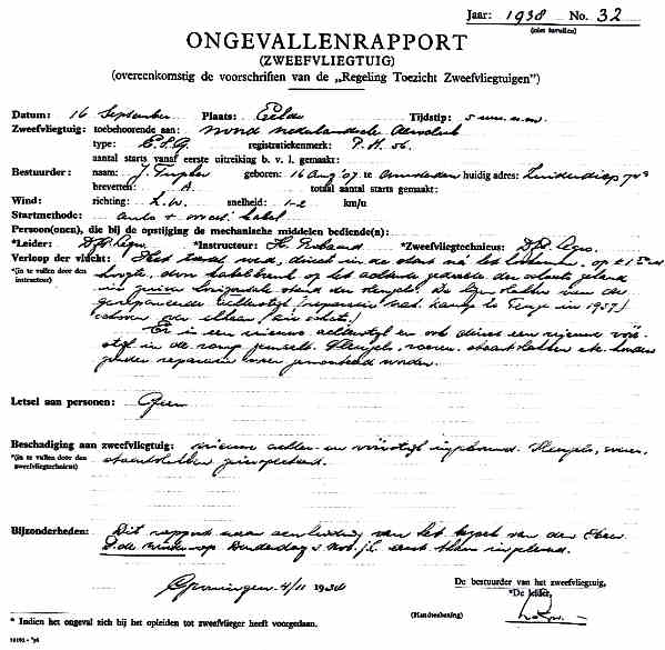 geschonken had aan Stichting Historisch Zweefvliegarchief. Het betreft de PH-10, mogelijk na bovenstaand ongeval. Hoewel de schade past bij dat ongeval, is het niet het ongeval van de heer Hers op 30.12.1936 en dit is het eerste geval waarbij de hier zichtbare kleding bij de datum past! ![]() |