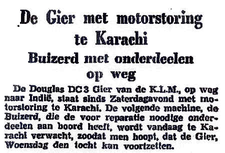 24.09.1938 PH-ARG Douglas DC-3 Karachi Weyrother von, Th. Motorstoring