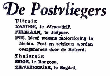 31.12.1938 PH-ALN Douglas DC-3 Alexandrië Franken, H.J. Wegens slecht weer niet vertrokken