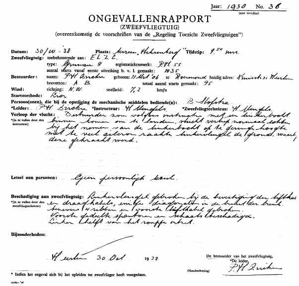 30.10.1938 PH-55 Grunau 9 (ESG) Heerlen Dirckx, P.H. Vleugel raakte de grond