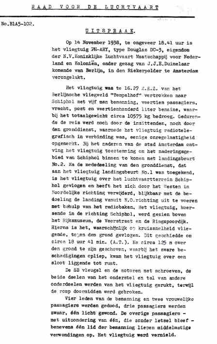 14.11.1938 PH-ARY Douglas DC-3 Schiphol Duimelaar, J.J.E. Tegen
