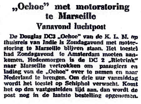 20.11.1938 PH-ALO Douglas DC-3 Marseille geen Motorstoring