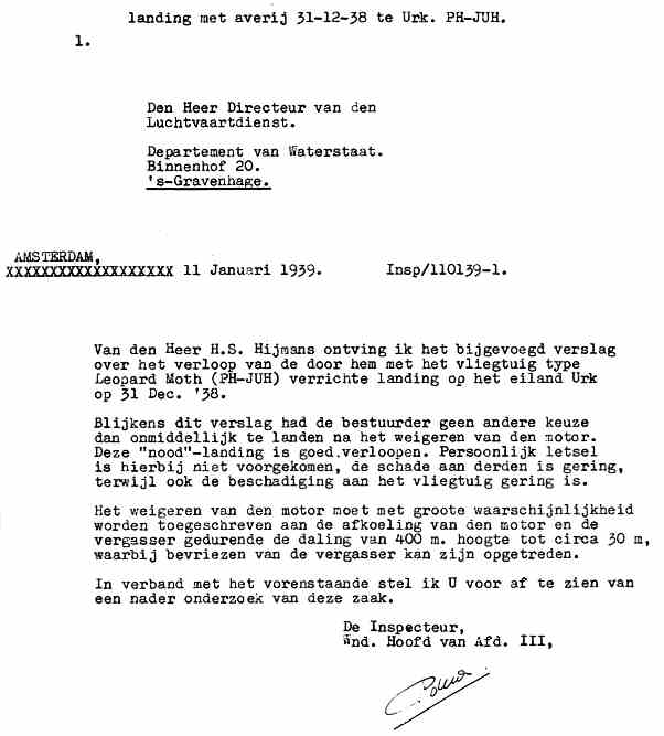 31.12.1938 PH-JUH de Havilland Leopard Moth Urk Heijmans Noodlanding,