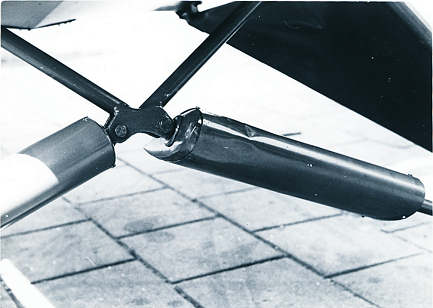 aan de rechtervleugel en aan de staart vóór het kielvlak.