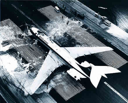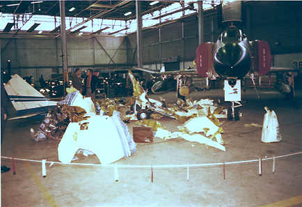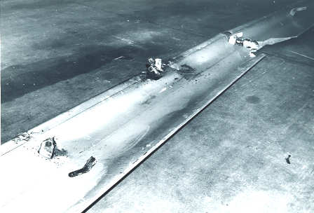 waren beschadigd. Vermoedelijk was bij een voorgaande touch-and-go de band lek