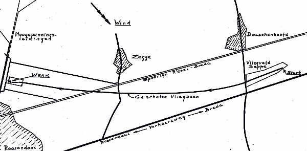 Het vliegtuig kwam ver in het veld aan de grond, ruim 200 meter voor het eind