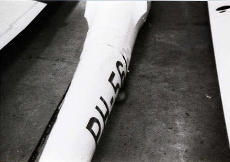 het toestel met het richtingsroer min of meer op de